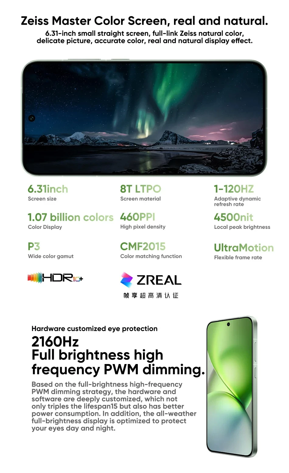 Screen: 6.31” (2640×1216), 120Hz AMOLED